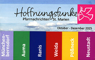 Neben dem Pfarrort Neustadt/Orla gehören die Kirchorte Auma, Münchenbernsdorf, Pößneck, Ranis und Weida zu unserer Pfarrei.