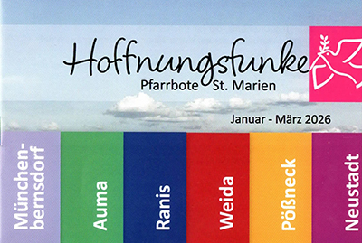 Neben dem Pfarrort Neustadt/Orla gehören die Kirchorte Auma, Münchenbernsdorf, Pößneck, Ranis und Weida zu unserer Pfarrei.